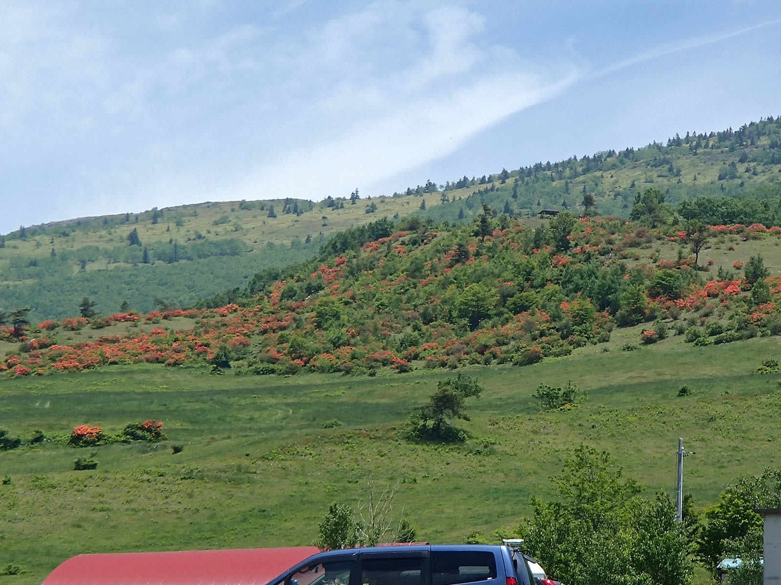 牧場の中の道を登っていきます。レンゲツツジはこのあたりで満開です。