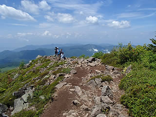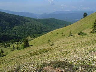 中四阿経由で菅平牧場に下っていきます。ぞくぞくと登山者が登ってきていて、頻繁にすれ違いました。