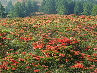 こちらの斜面のレンゲツツジは今がちょうどピークという感じで見事です。