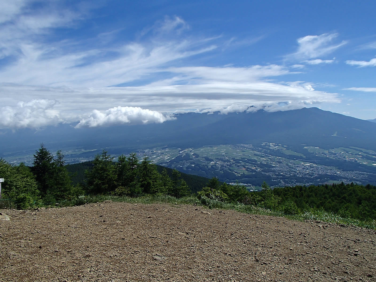 霧ヶ峰から八ヶ岳にかけては稜線に低い雲がかかっています。