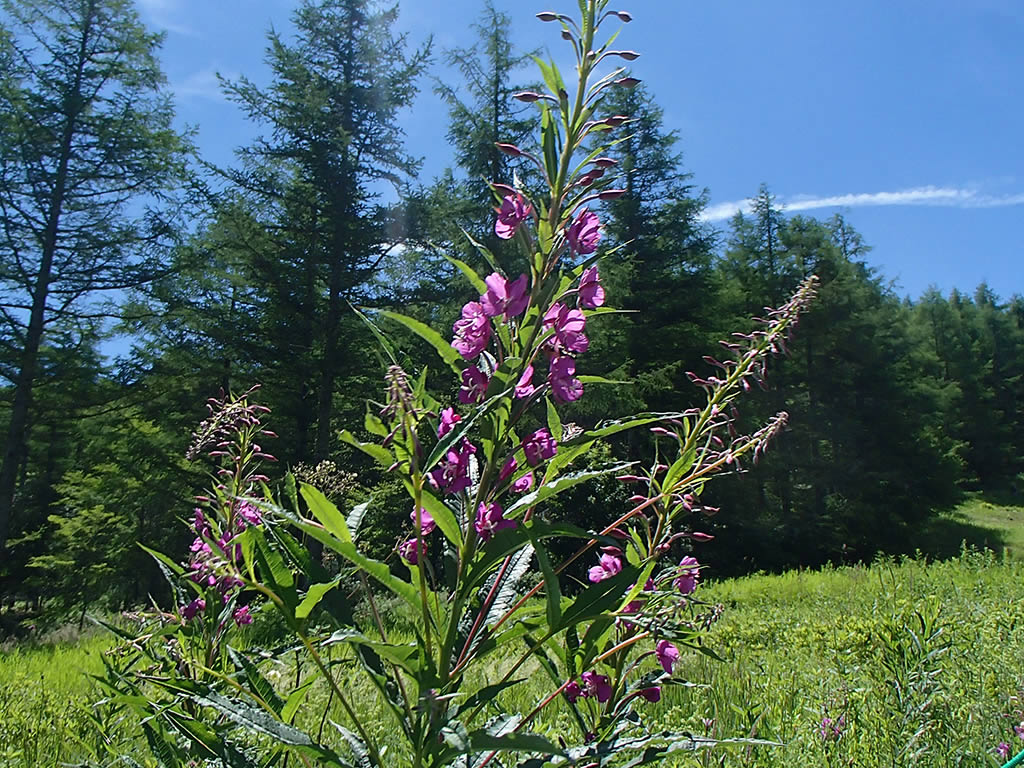 斜面を上がるに従ってヤナギランの花が増えていきます。やはりこの大型でピンクの花を沢山付けるヤナギランが咲き始めると、斜面が急に華やかになりますね。