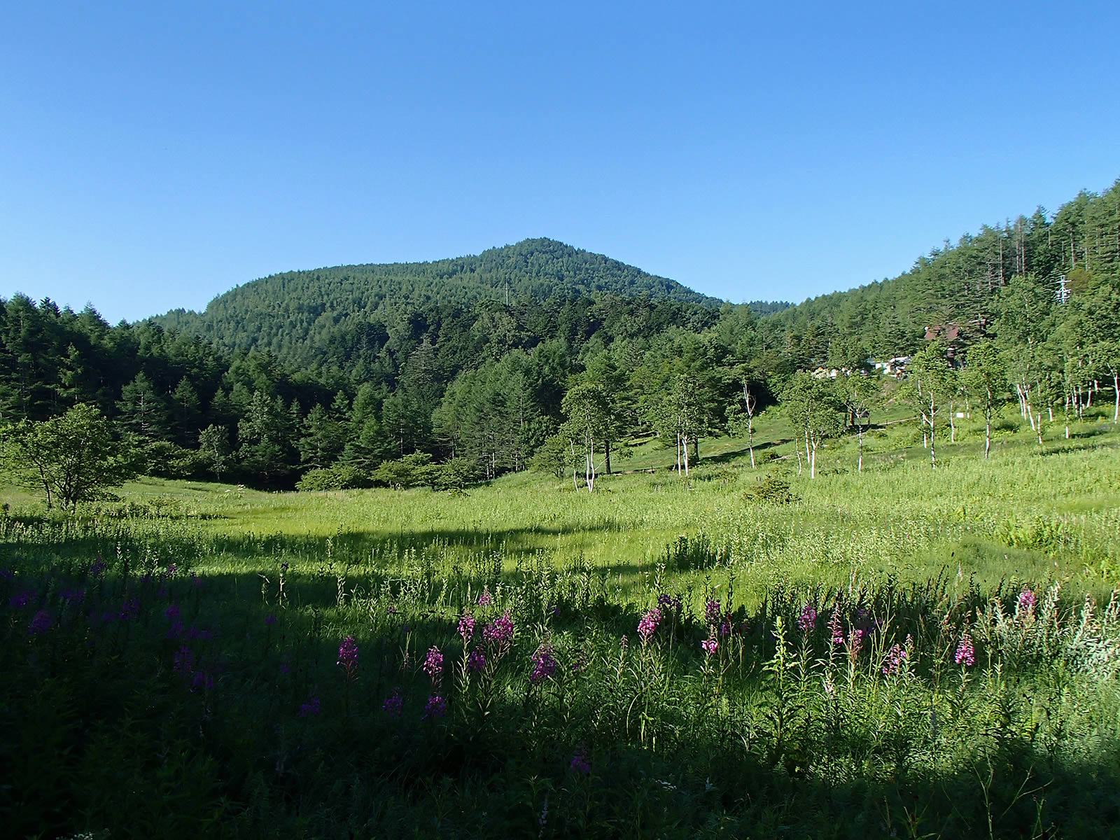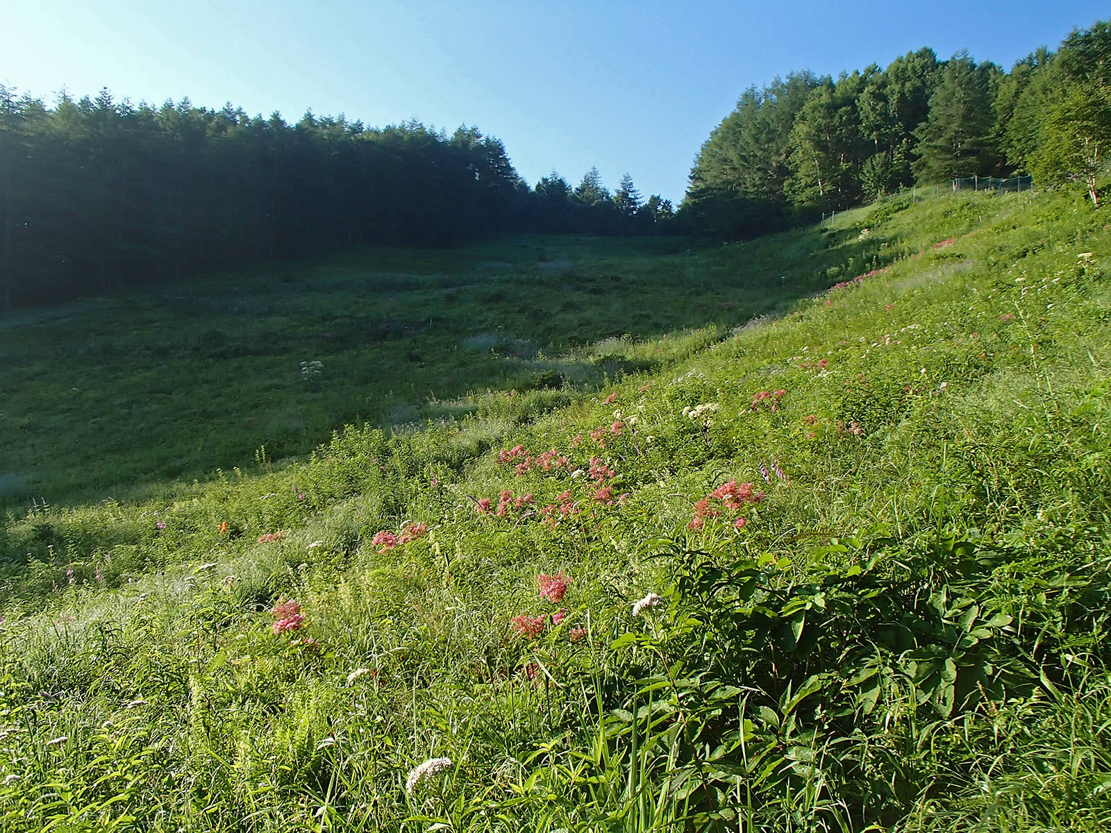 私の母が先週に亡くなり、葬儀等もあって忙しく、しばらくはどこにも出かけられずにいました。この日も家の中の片付けを予定していましたが、始めるのは9時過ぎくらいからということで、それなら早朝に近くの入笠山に花を見に出かけてみようと急きょ出かけてきました。(花が大好きだった母ですので、花を沢山見るのも供養になるかなと思いまして)