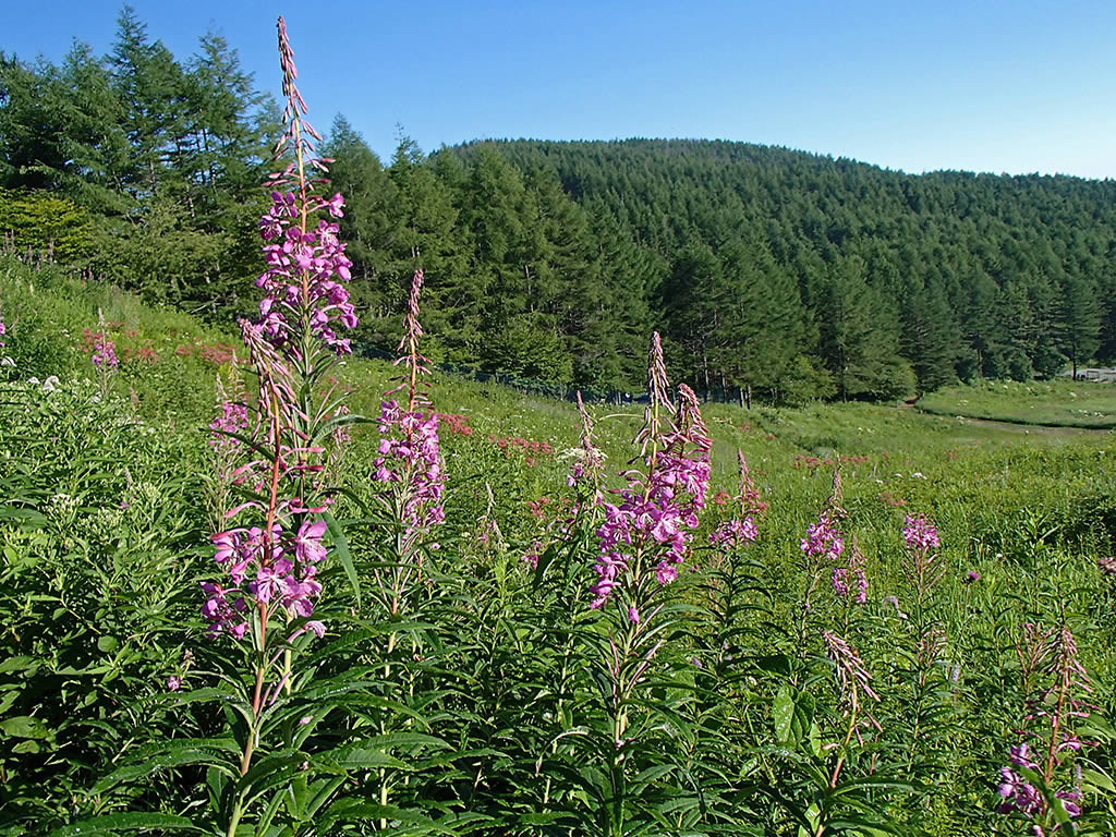 ヤナギランの群落と入笠山。