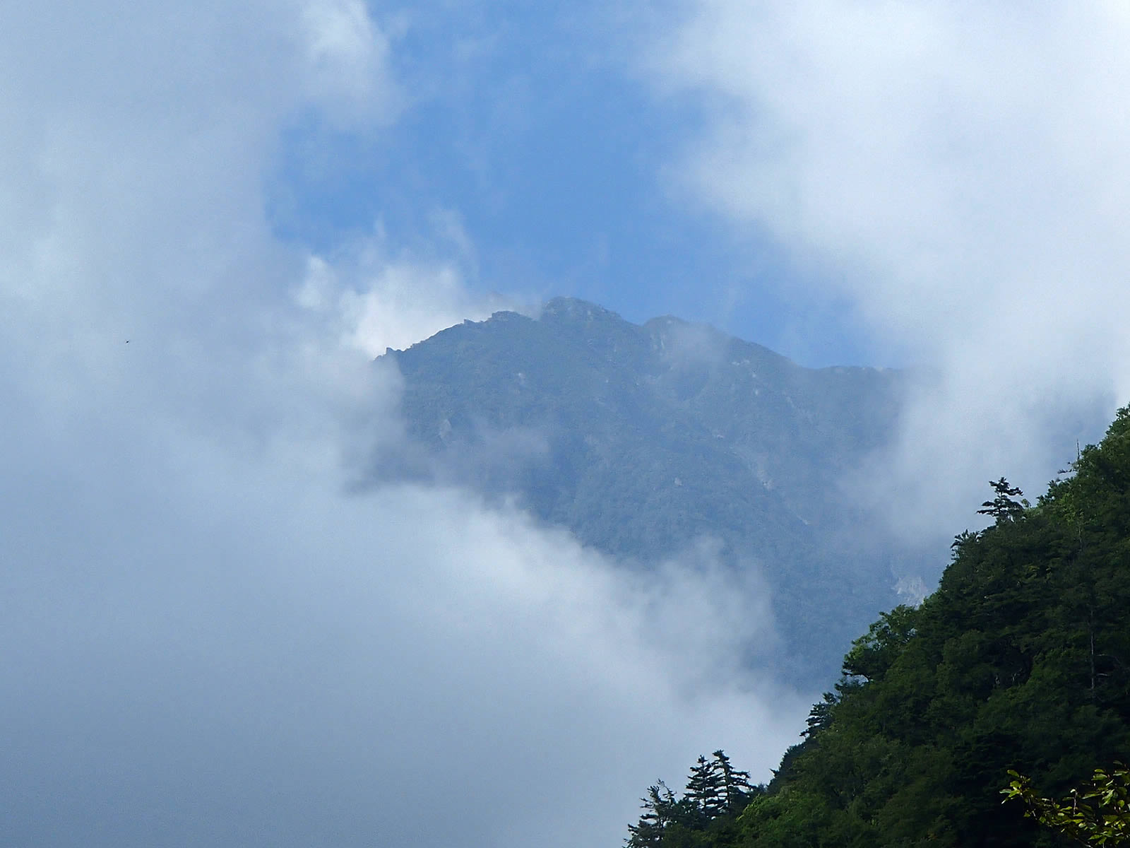 甲斐駒の黒戸尾根。甲斐駒にはガスがかかり始めていました。ちなみに今年の6月には黒戸尾根を日帰りピストンしました。