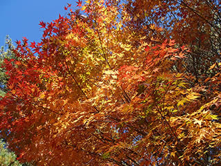 もう少し進むと2本目の大きなもみじがあります。こちらも同様に色付き始め。
