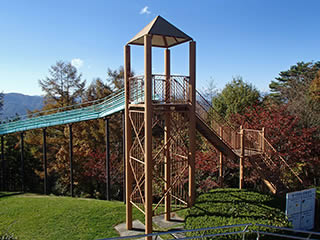 一番高いところに展望台と巨大すべり台があります。あそこまで登ってみます。