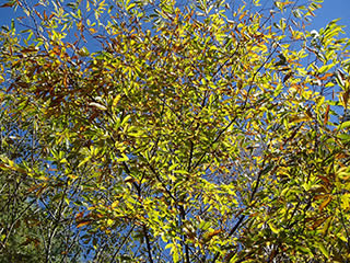 山頂周辺の広葉樹の黄葉は、黄緑色という段階でした。