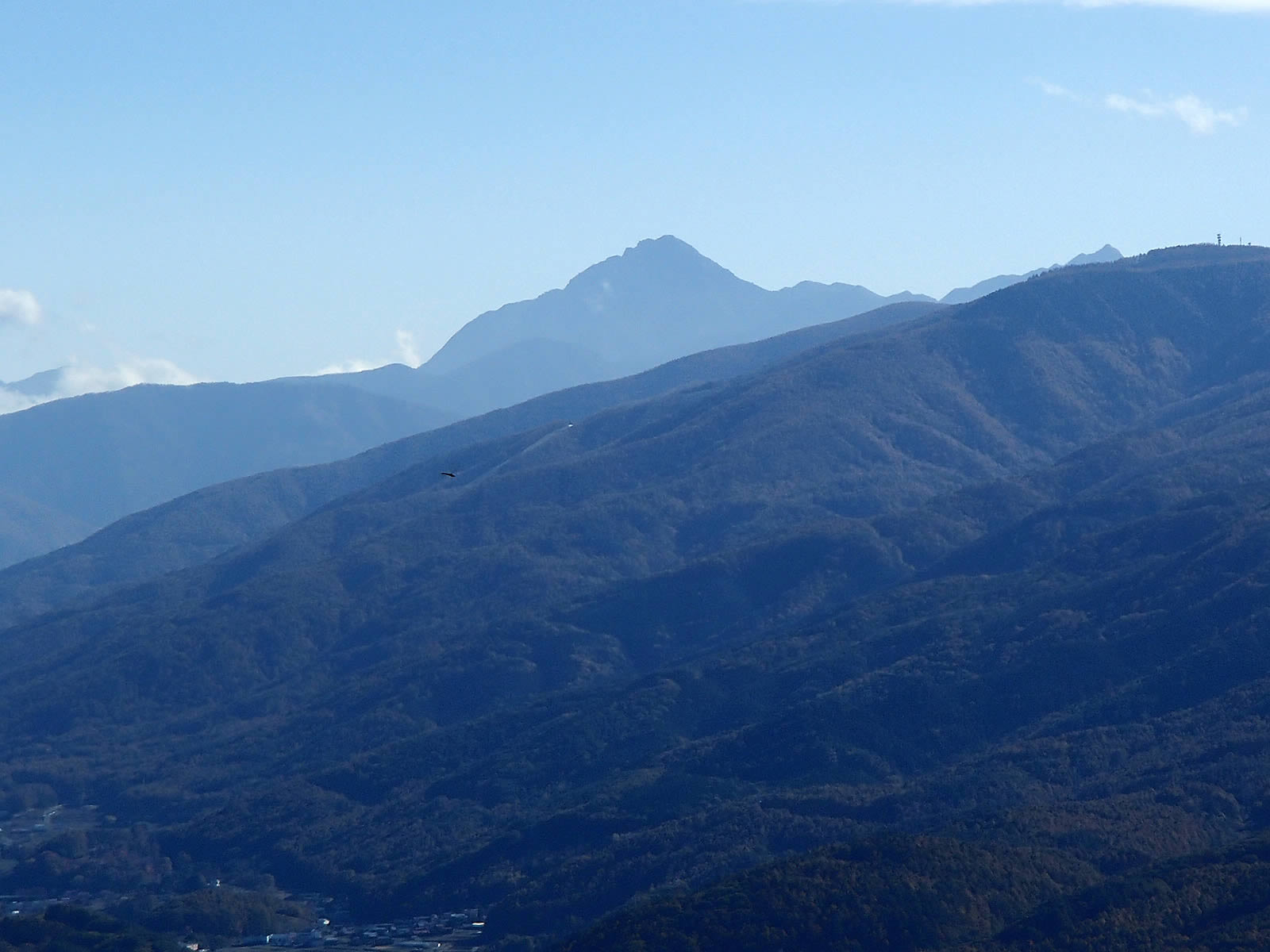 再び甲斐駒をズーム。右側に少しだけ見えるとんがったピークは北岳か鋸岳か。