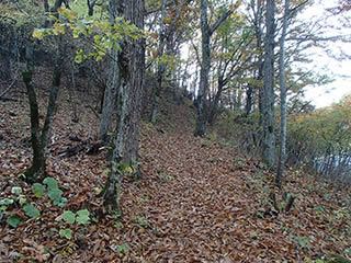 急斜面のトラバースが多いので、スニーカーでなく滑りにくい普通の登山靴のほうが良いでしょう。