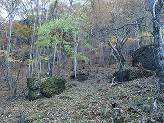 日差しがあれば紅葉がきれいな辺りですが、日差しがまだ届かないため紅葉もくすんでいます。