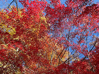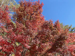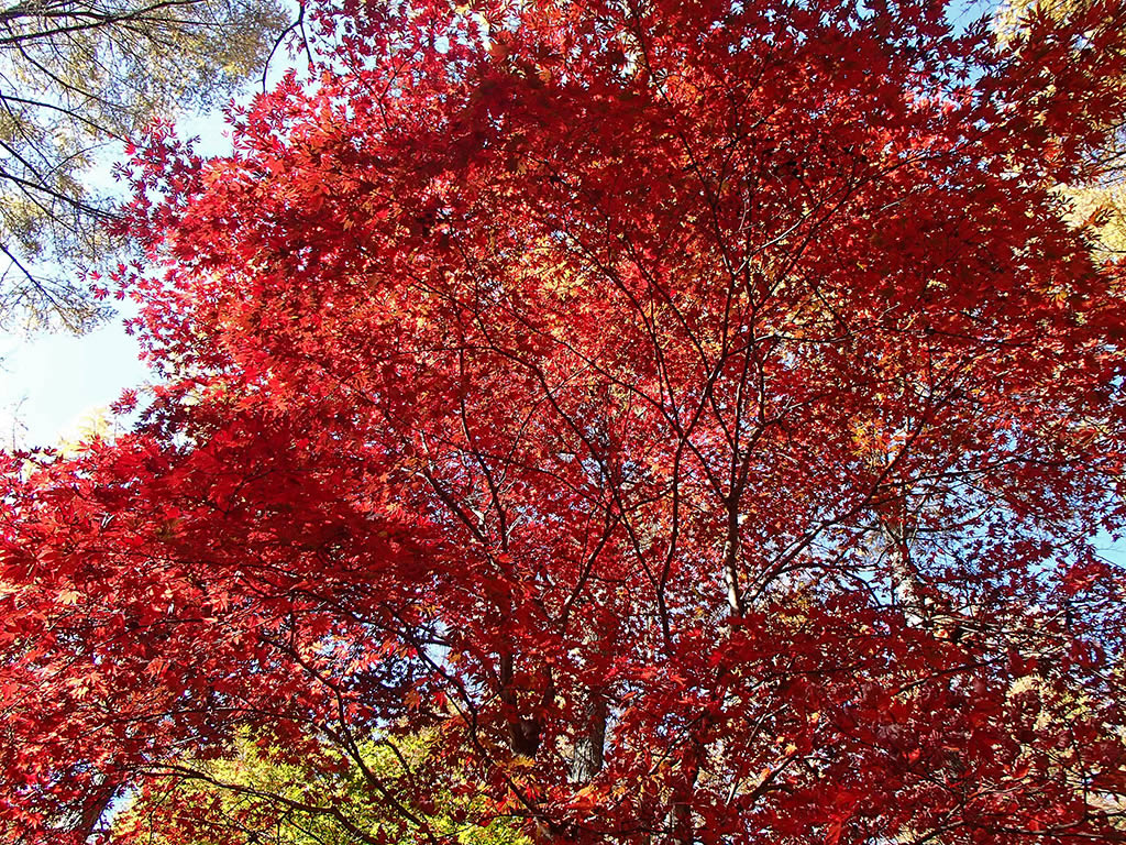 真っ赤なもみじの隣にはまだほとんど緑のもみじも。今年はかなりばらついている感じです。