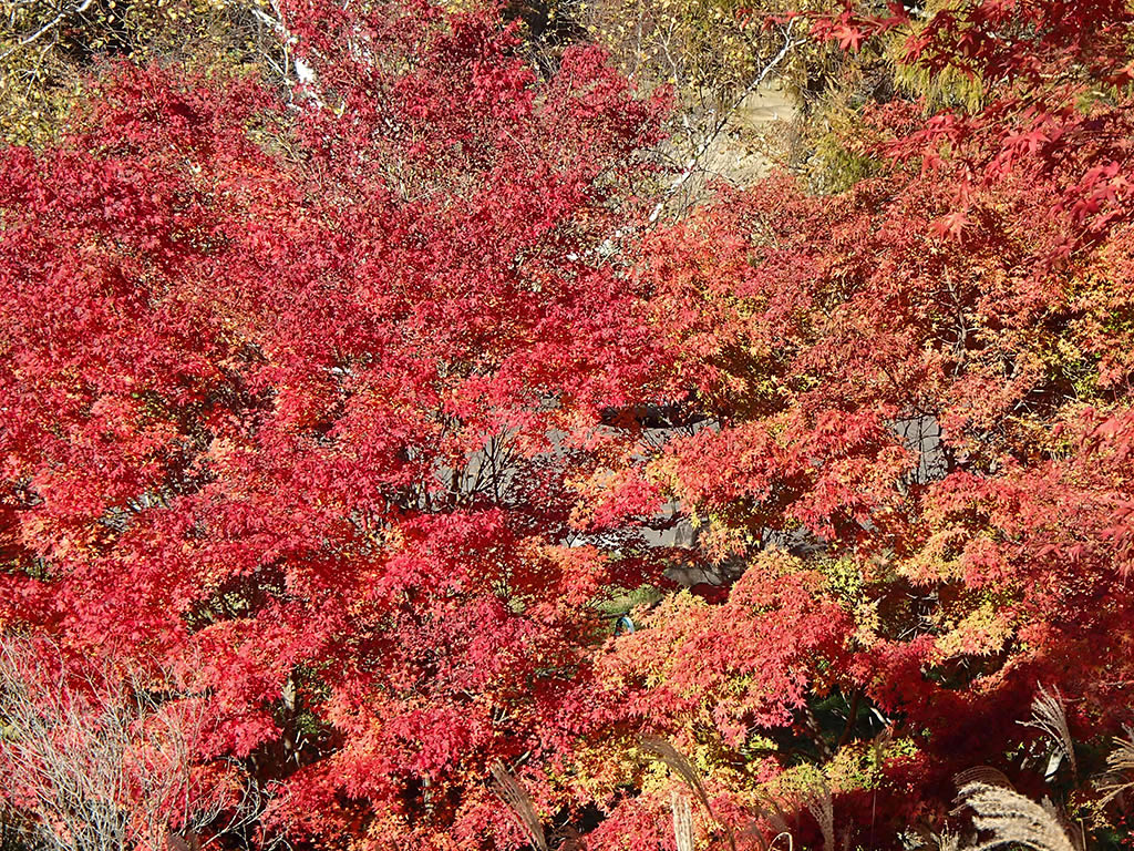 この黄色と真っ赤な紅葉は鮮やかでした。