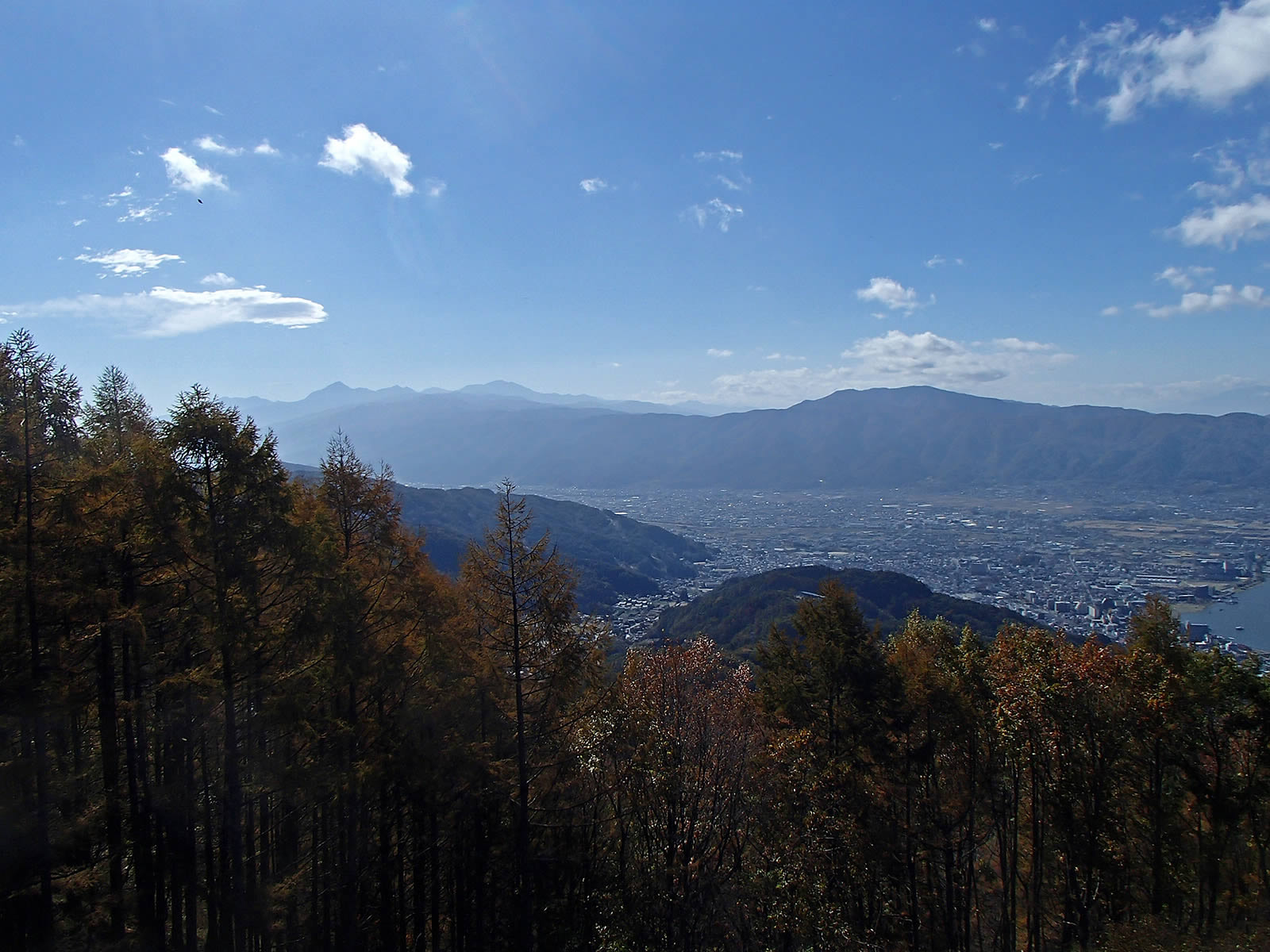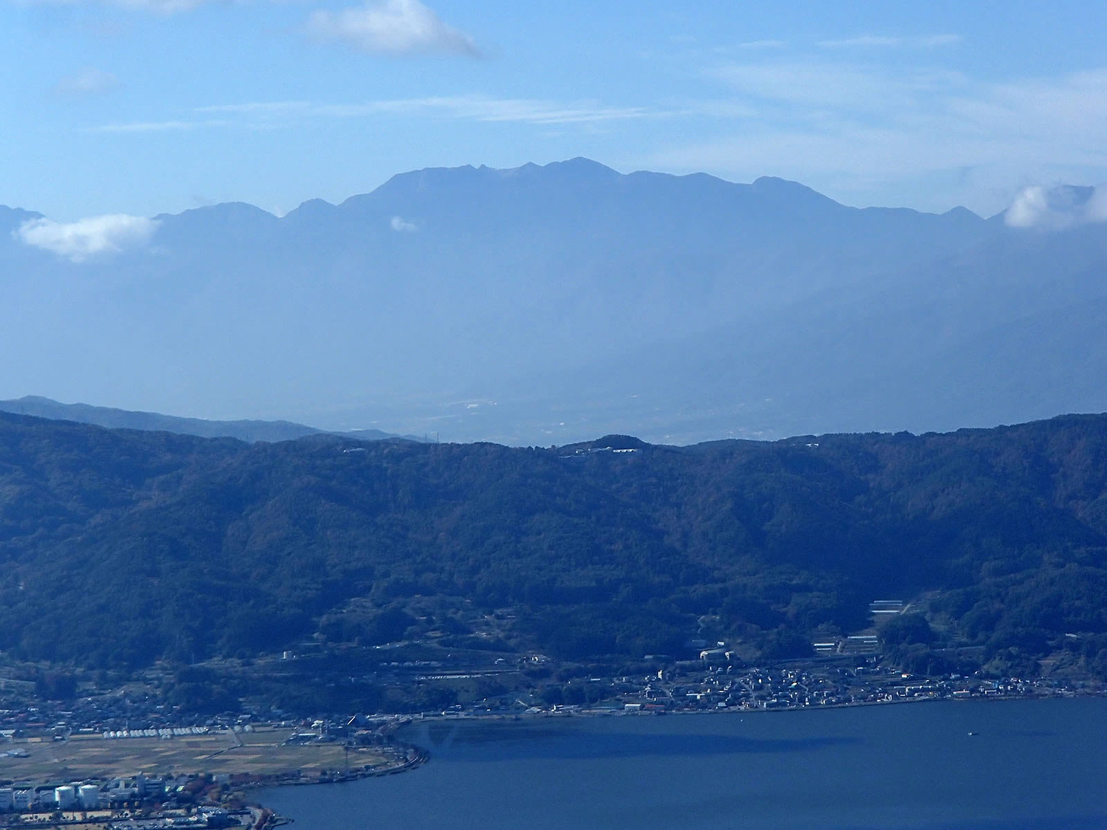 ちょうど正面に中央アルプスと眼下に広がる諏訪湖。