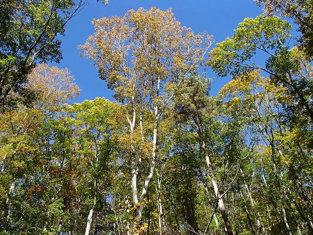 でも全体としてはまだまだ緑が多いです。この辺りが一面に色づくのは10日後くらいでしょうか。
