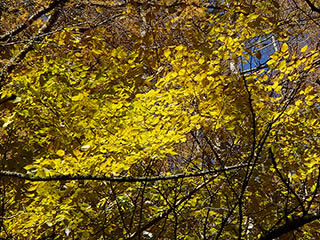 朝は日差しが当たっていなかった黄葉も、日差しで鮮やかになりました。