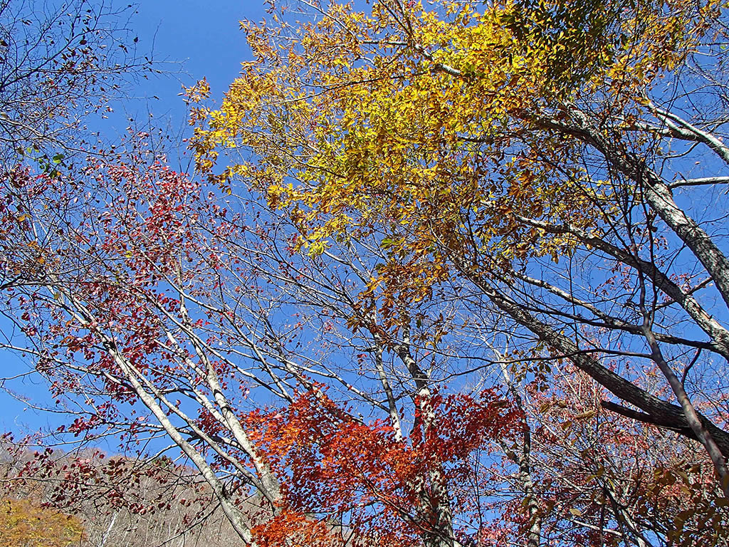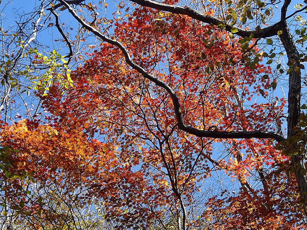 少し雲が多めで西側半分は大展望というわけにはいきませんでしたが、でもたっぷりの赤や黄色の紅葉に身も心も癒やされた山行きとなりました(^^)。