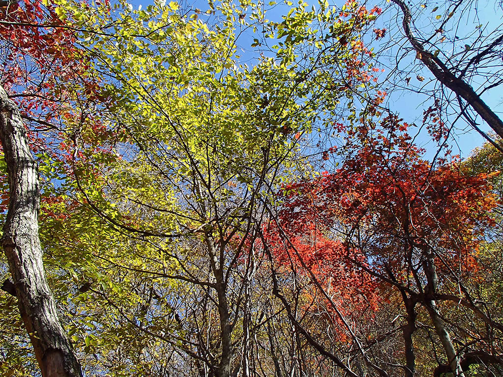 最近は紅葉を楽しみに秋になると茅ヶ岳を訪れることが多いのですが、昨年は11月16日に訪れて登山口のあたりでちょうどピークでした。今年ですが、時期的に早いこともあり、登山口辺りはやっと色付き始め、女岩の辺りが紅葉のピークで、女岩の少し上まで見頃の紅葉をたっぷりと楽しむことが出来ました。