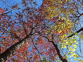 赤だけで無く黄色の黄葉も日差しを浴びて輝いていました。