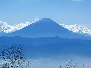 八ヶ岳赤岳。八ヶ岳と茅ヶ岳の間にある雲が邪魔していると思いますので、時間によっては赤岳がピークまで見えていたかも知れません。
