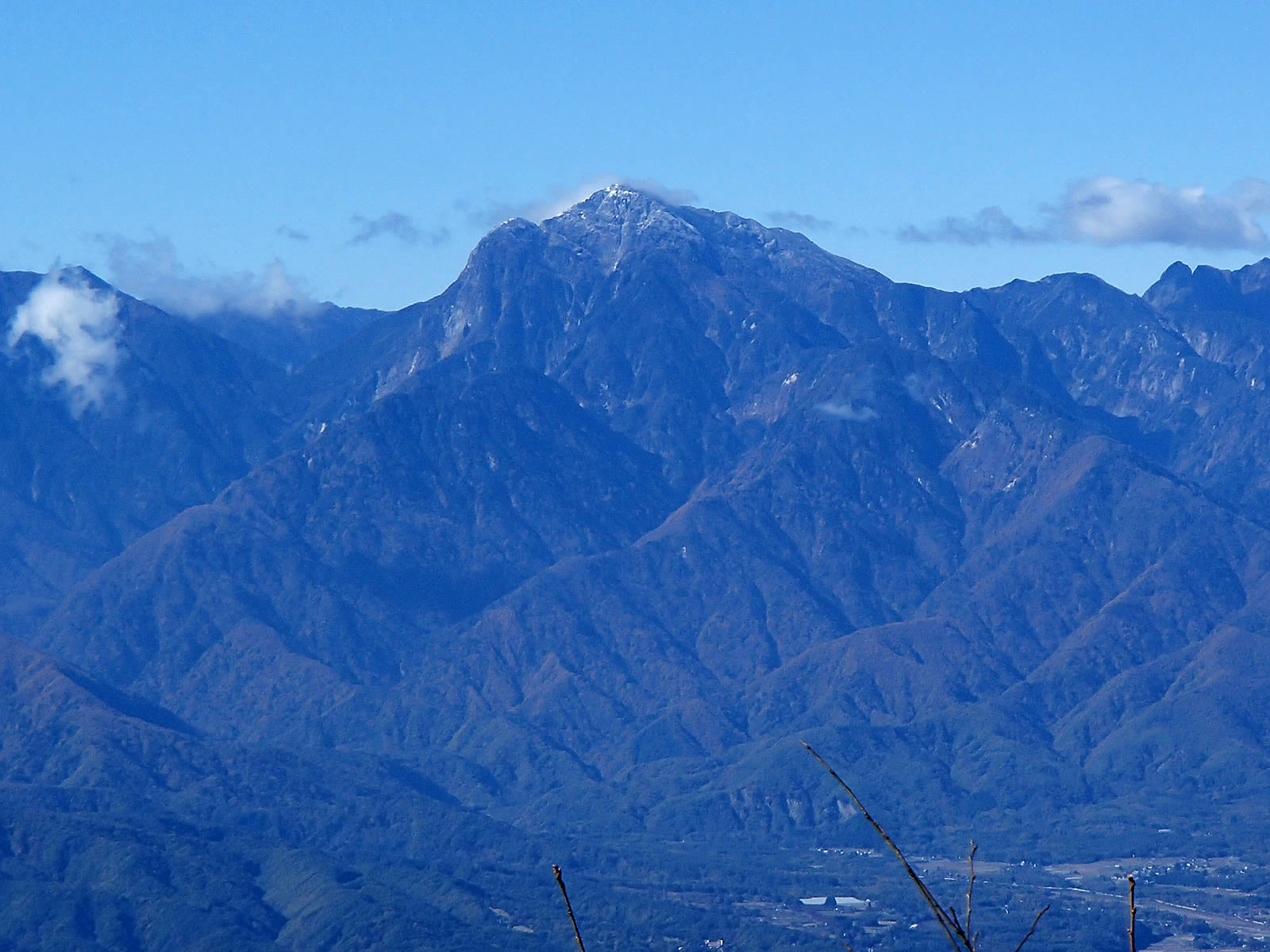 甲斐駒。うっすらと雪化粧しているのが見えます。