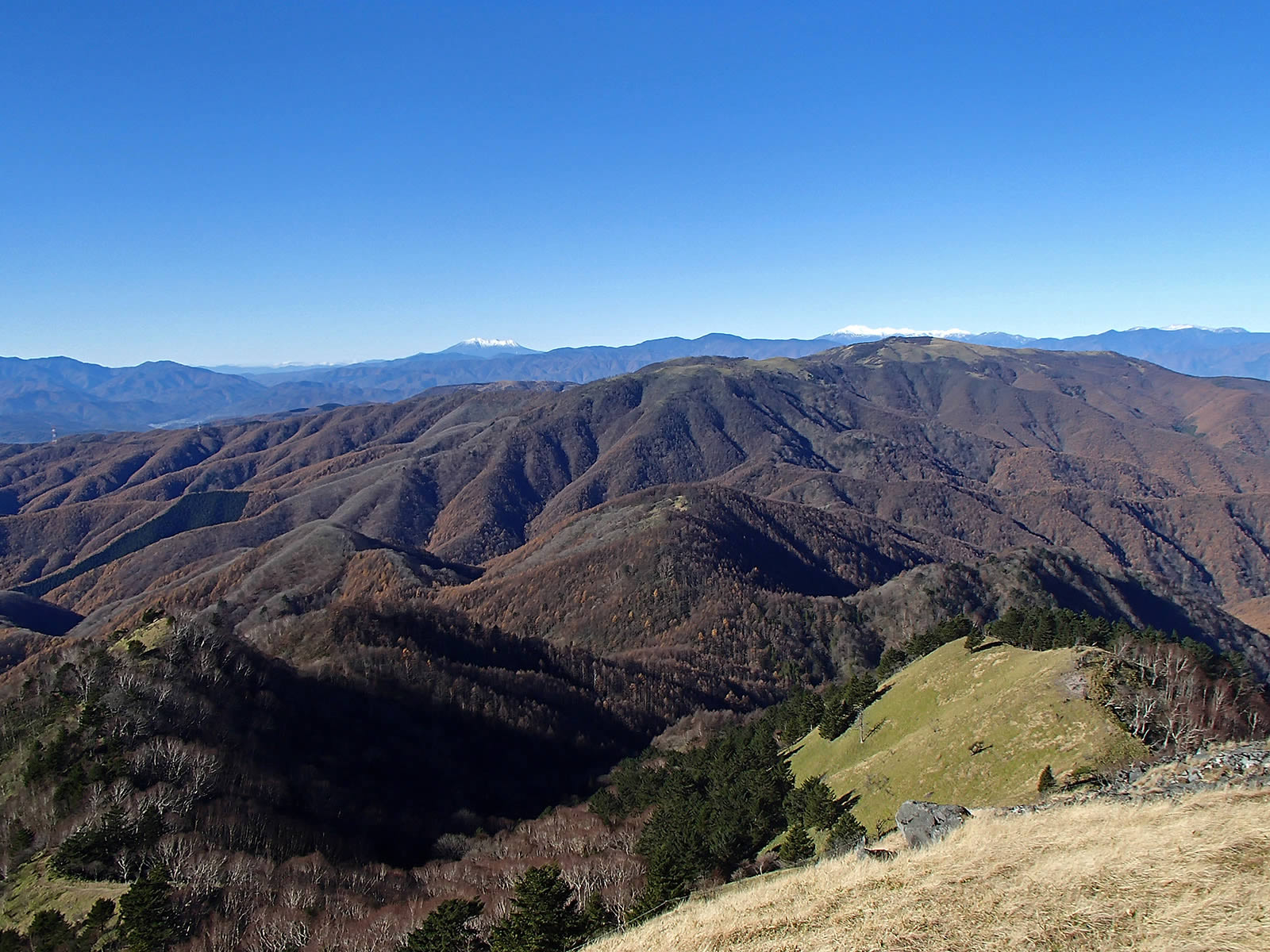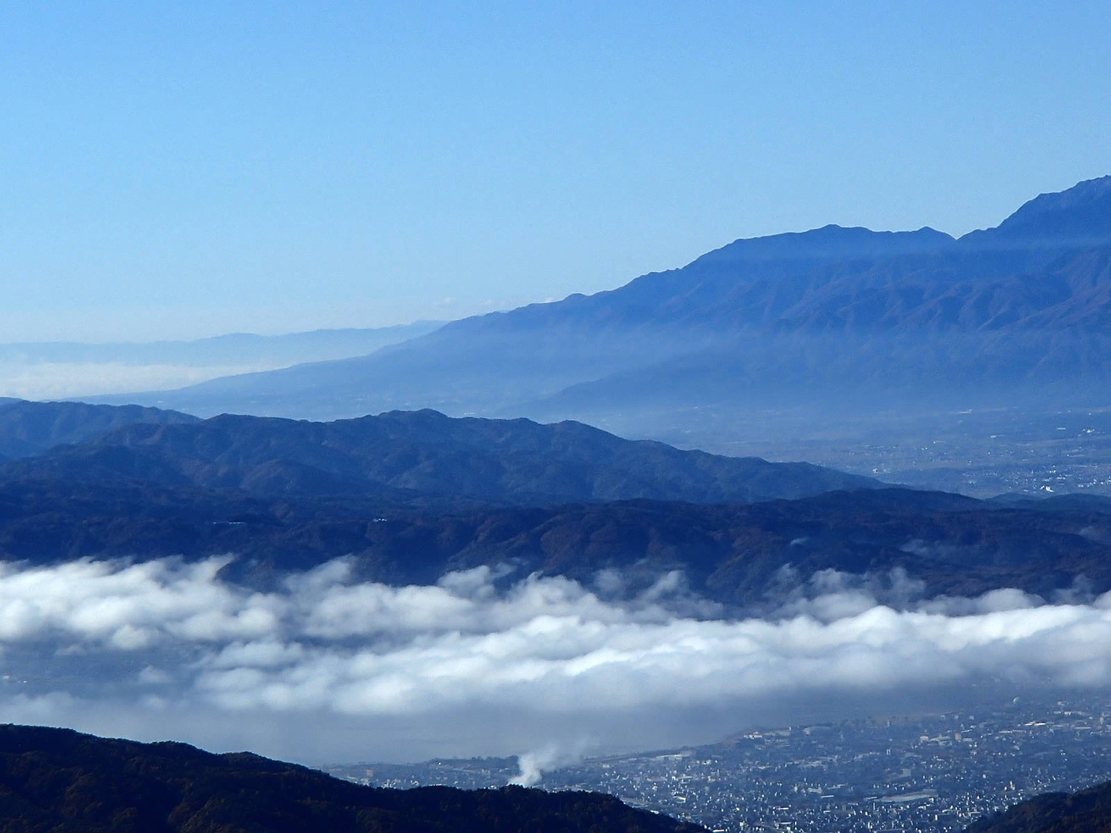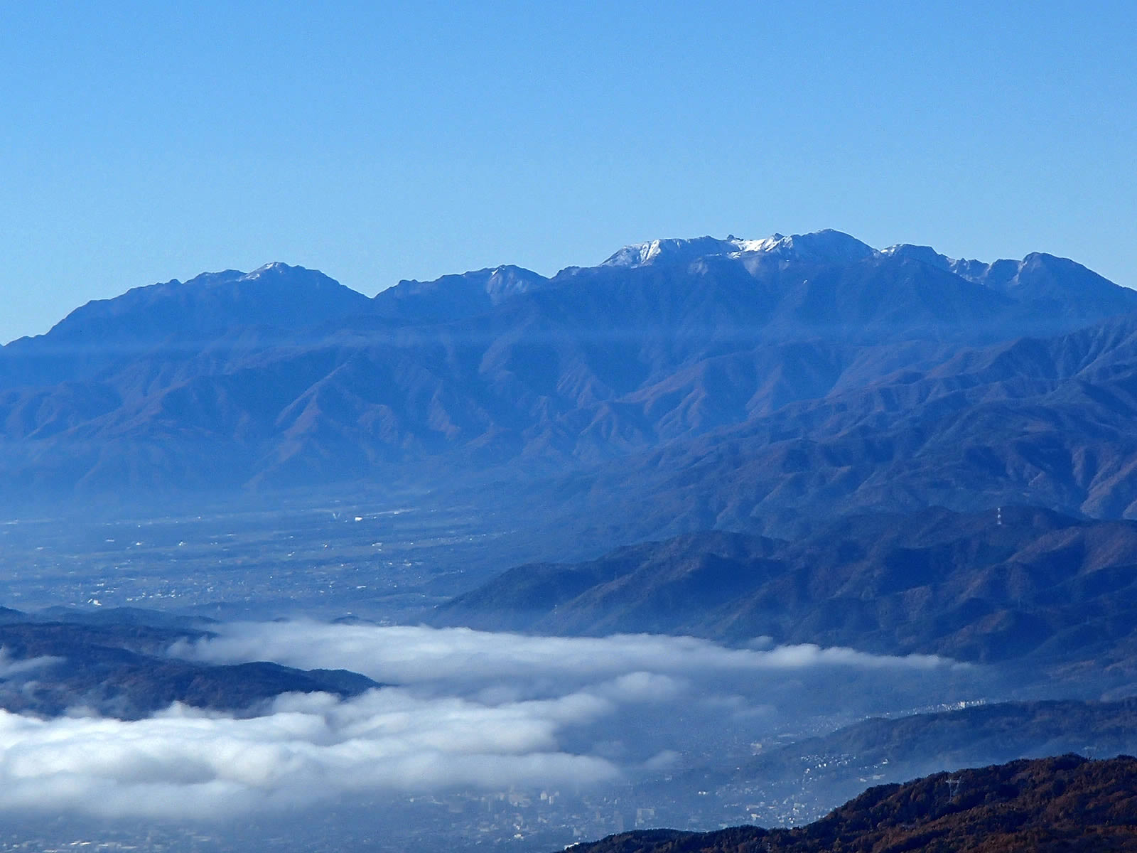 この日は日本列島全体が移動性高気圧にすっぽりと覆われ、朝から雲一つ無いすばらしい快晴となったのですが、それに加えてライブカメラでチェックしたら真っ白になった北アルプスがきれいに見えている!、ということでたまらずに朝、慌てて近くの三峰山まで展望を楽しみに出かけてきました。
