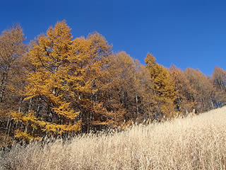 さてここからは帰る途中の霧ヶ峰で見かけたきれいなカラマツの黄葉です。