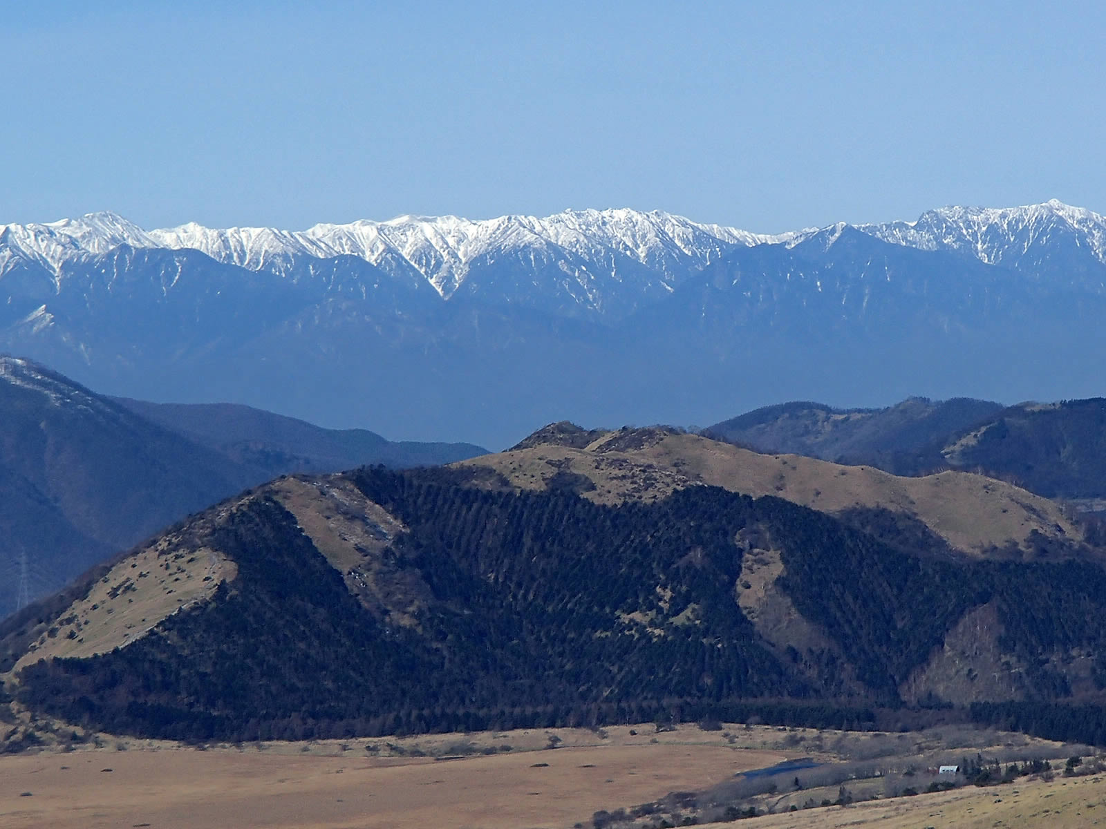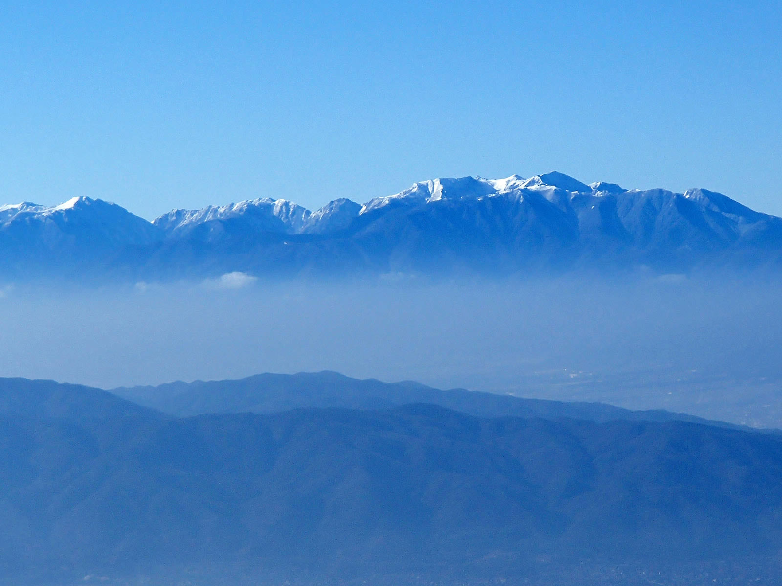 南アルプス、富士山方面。こちら側は下の方がずいぶんとかすんでいます。