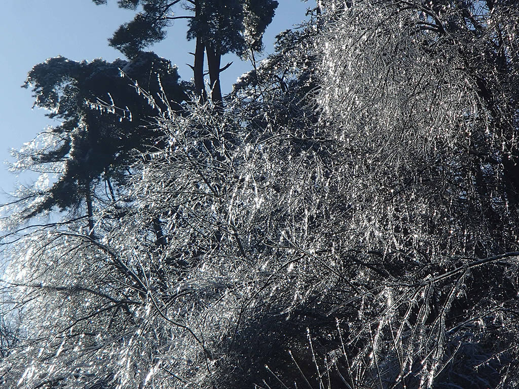 まるでアイスキャンディーのように枝に丸々と氷が付いていますね!。これでは木が折れても全然不思議では無いですね。