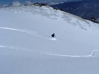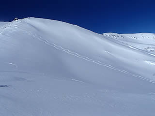 隣のこの斜面が気持ちよさそうでしたので、あとで少しだけ滑ってみることにします。なお雪の状態によっては雪崩れやすい斜面でもありますので、もし滑る場合は十分気をつけて下さい。