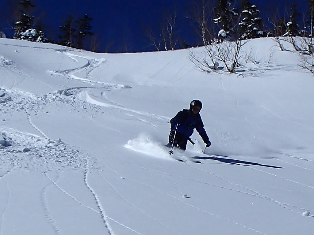 帰りに、登っていく左側の斜面を滑りましたが、パウダーが気持ちよかったです。
