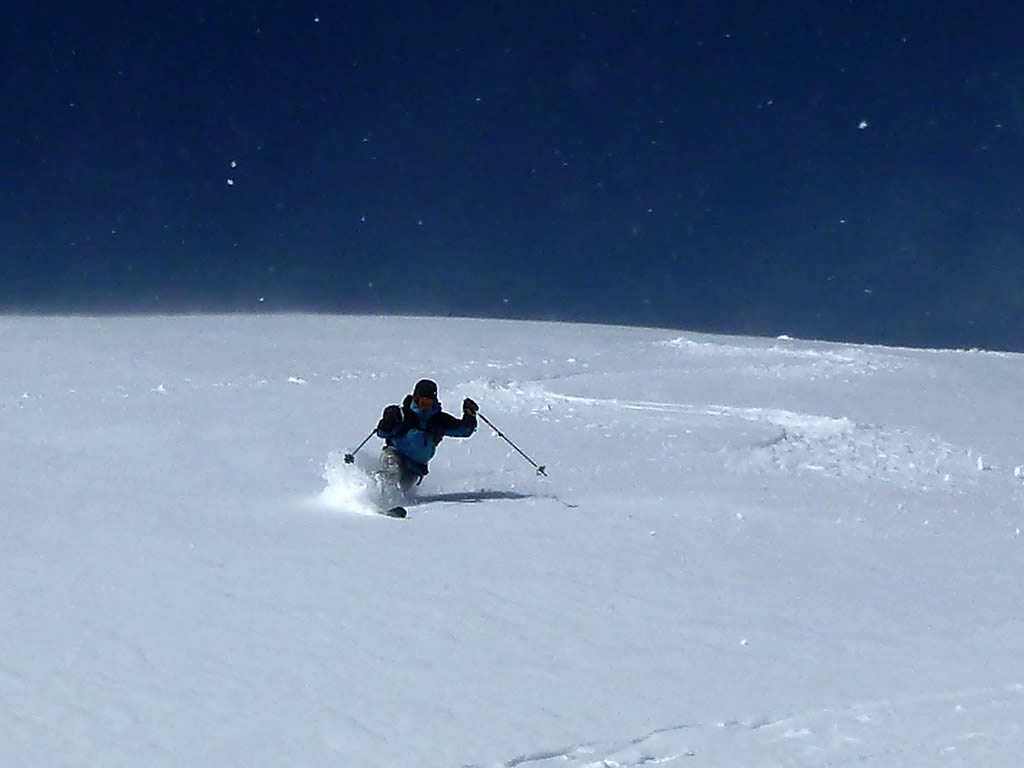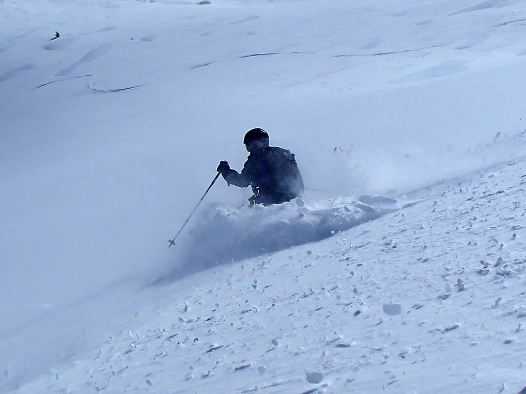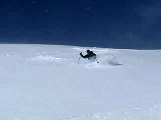 ここから私の滑り。この辺りは雪が深くなり大きなスプレーが上がります。