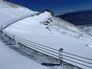 剣ヶ峰。まだ上の方は強風のようで大きな雪煙が上がっています。