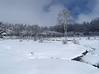 今シーズン2回目となる入笠山にバックカントリー(テレマークスキー)にこの日の午前中、出かけてきました。一昨日、前日と続けて降雪があり、雪がほとんど消えてしまっていた入笠湿原も真っ白になったらしいと知り、今シーズンぜひもう一度入笠山周辺を滑っておきたいと思ったためです。