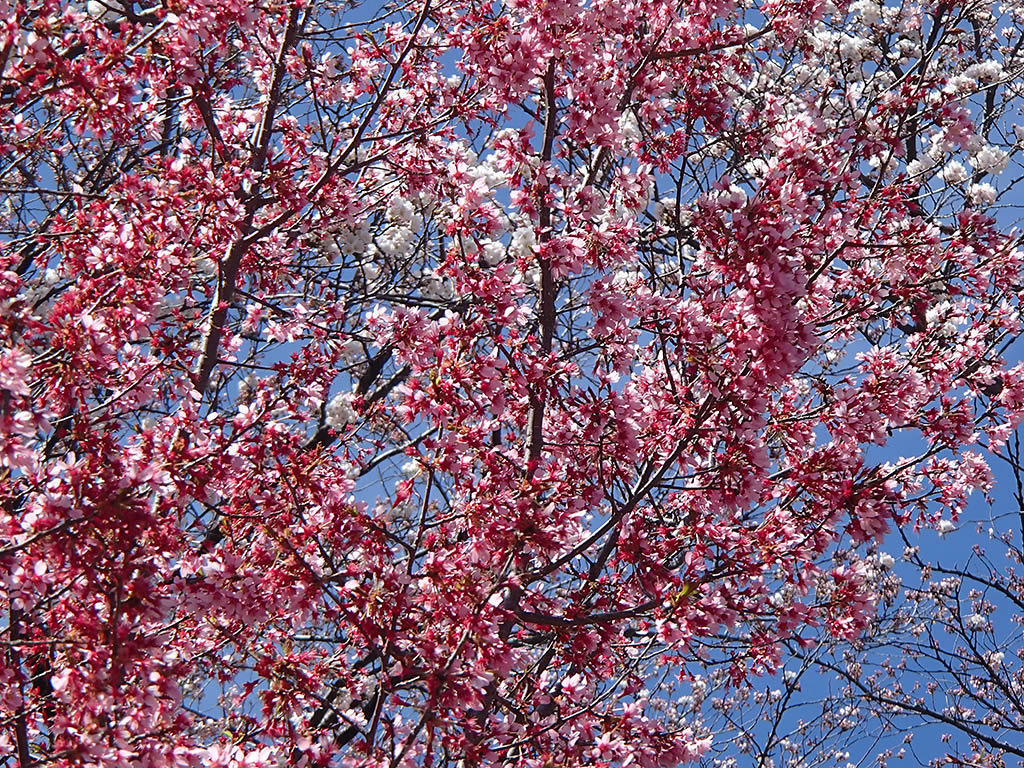 この桃色のしだれ桜は、2日前はほとんど咲いていなかったのにほぼ五分咲き位まで来ていました。
