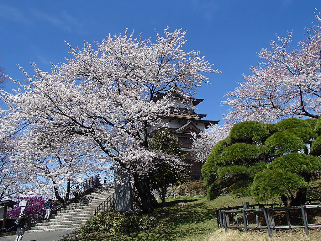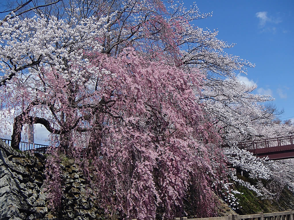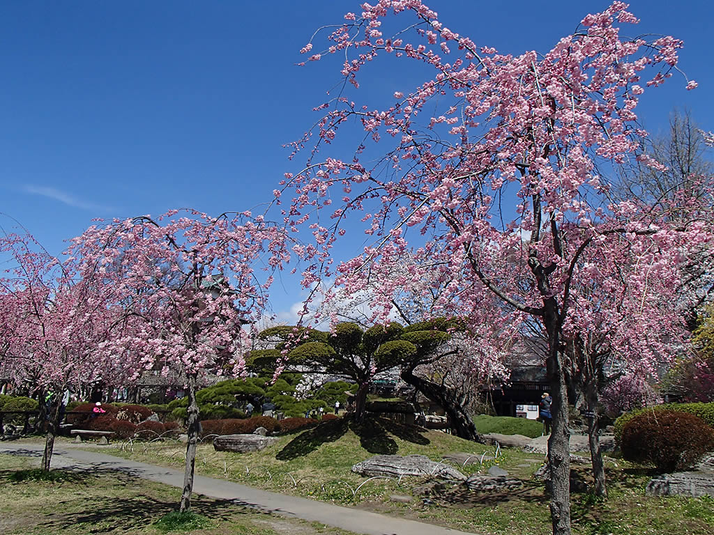 隣の諏訪市の高島公園(高島城)の桜を見に2日前に出かけたのですが、まだ五分咲き位かなという感じで満開にはもう少しかかかるかなと思っていたのですが、この日の午前中、用事があって近くを通りかかった時、思った以上に桜が咲いていましたので、たまらずに(^^; 車を駐めて桜を見ていくことにしたのでした。