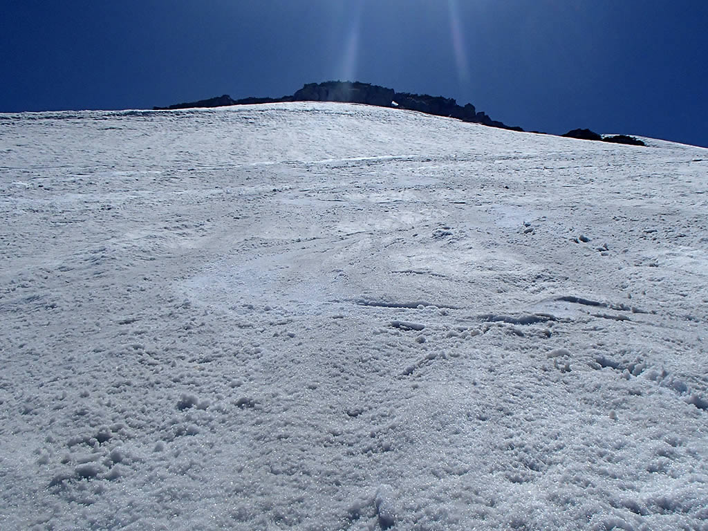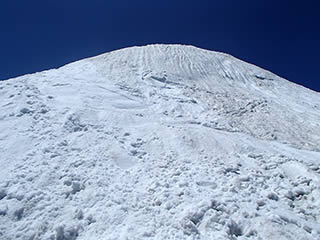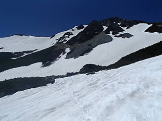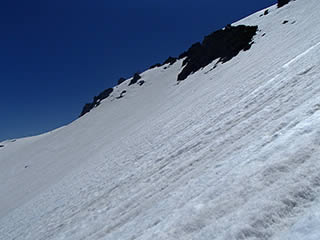 ここから斜面を直登します。念のためストックは仕舞ってピッケルを持ちます。