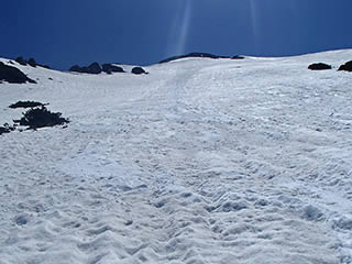 山頂側の斜面上部はやっぱり急です。
