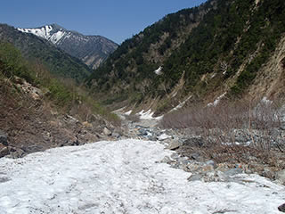 ちなみにここからすぐ下が雪渓の末端です。