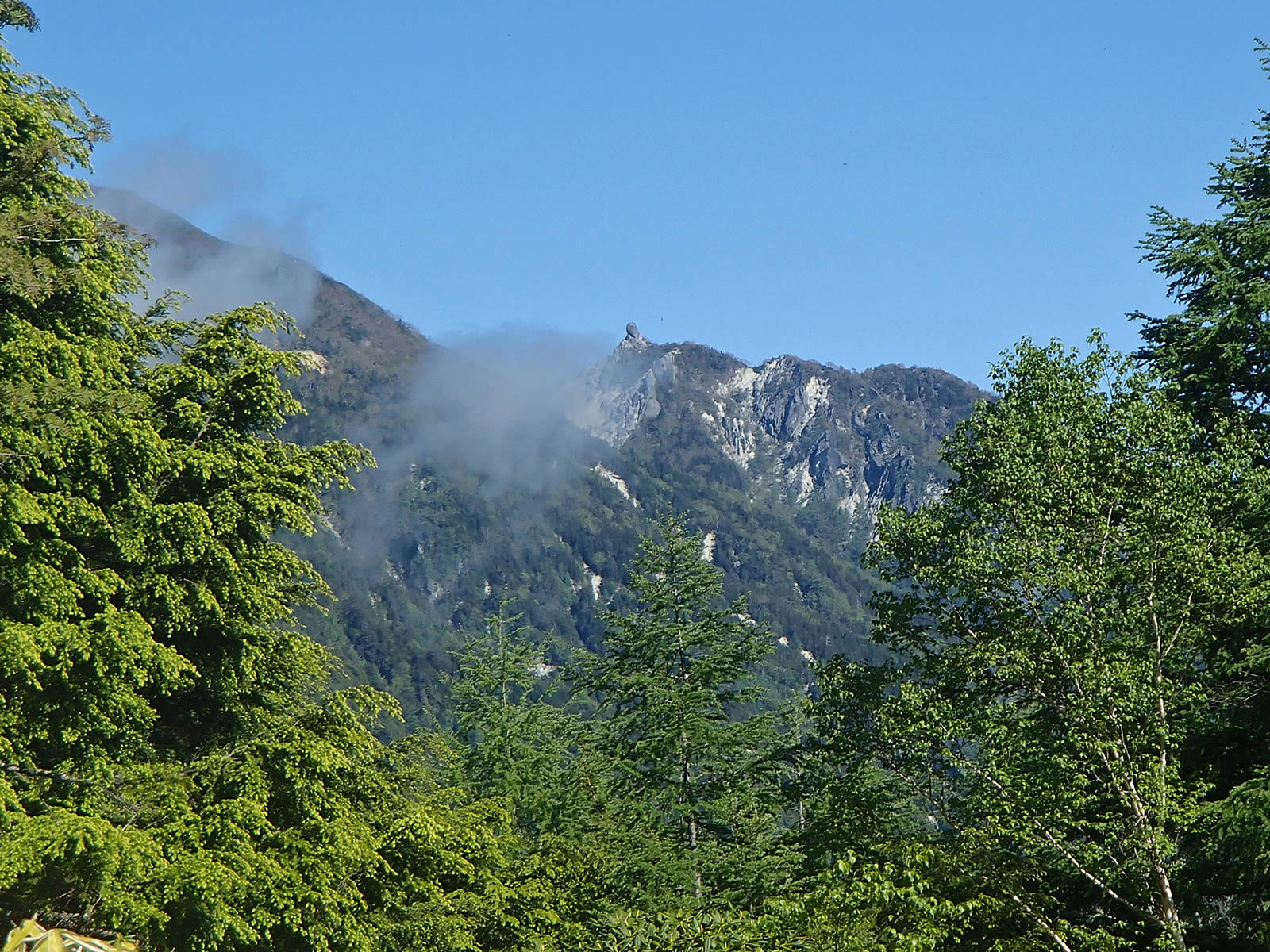鳳凰山。オベリスクはガスに隠れてしまいました。今日はガスが湧くのが思ったより早かったです。あと20分早くスタートしていれば(^^;。
