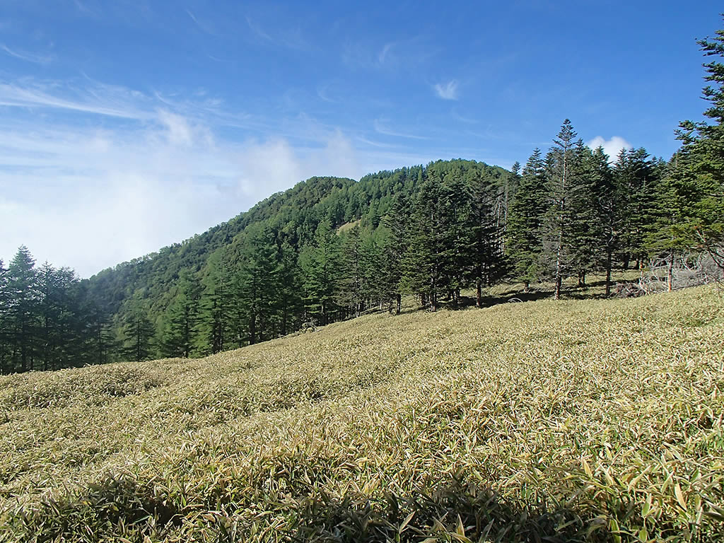 7時49分、千頭星山に到着。ここは樹林に覆われて展望はありません。