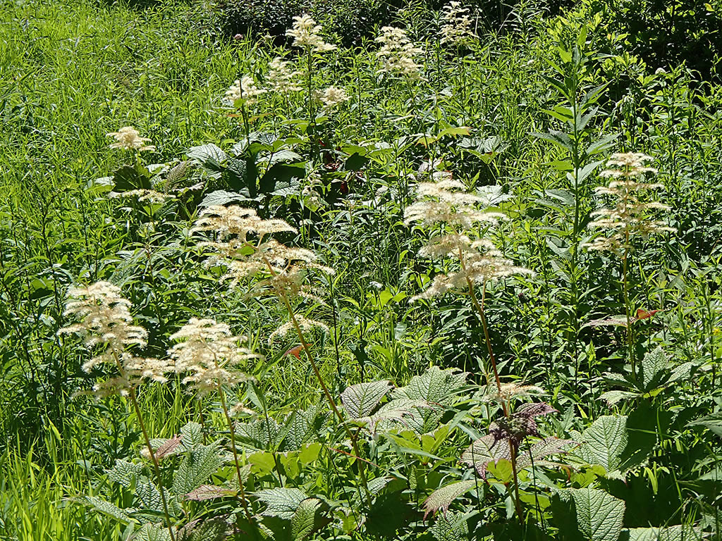 シモツケの赤もだいぶ目立ってきました。もうすぐ斜面を一面ピンクに染めることでしょう。