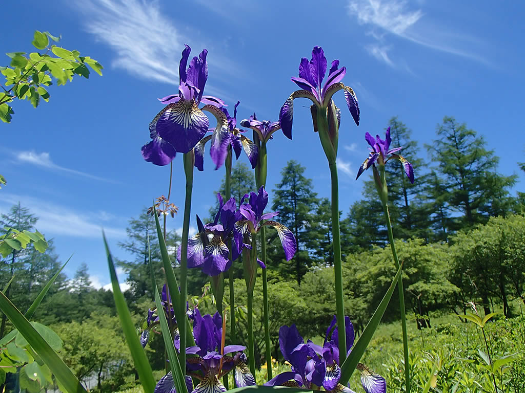 10日前はアヤメが見頃でニッコウキスゲが咲き始めでしたが、今回は入笠湿原ではノハナショウブが見頃になっていました。御所平お花畑ではアヤメとハクサンフウロが見頃、ニッコウキスゲは花が増え、ヤナギランが咲き始めと言うところでした。