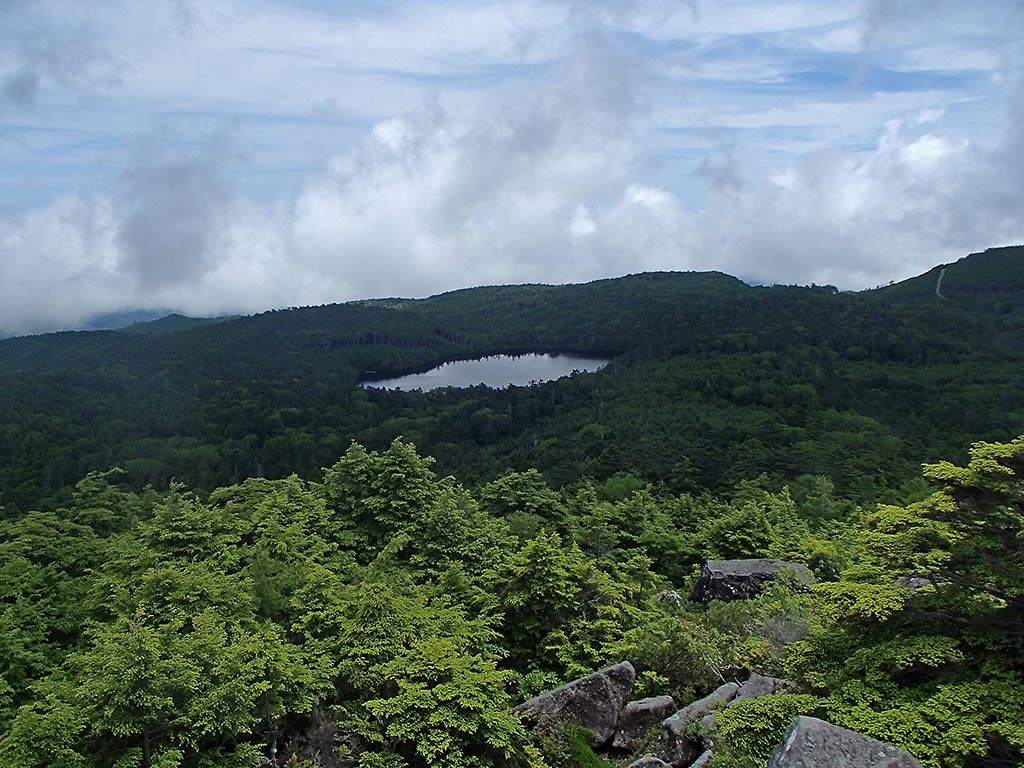 白駒の池。あれれ、上空には少し薄雲があるかな(^^;。