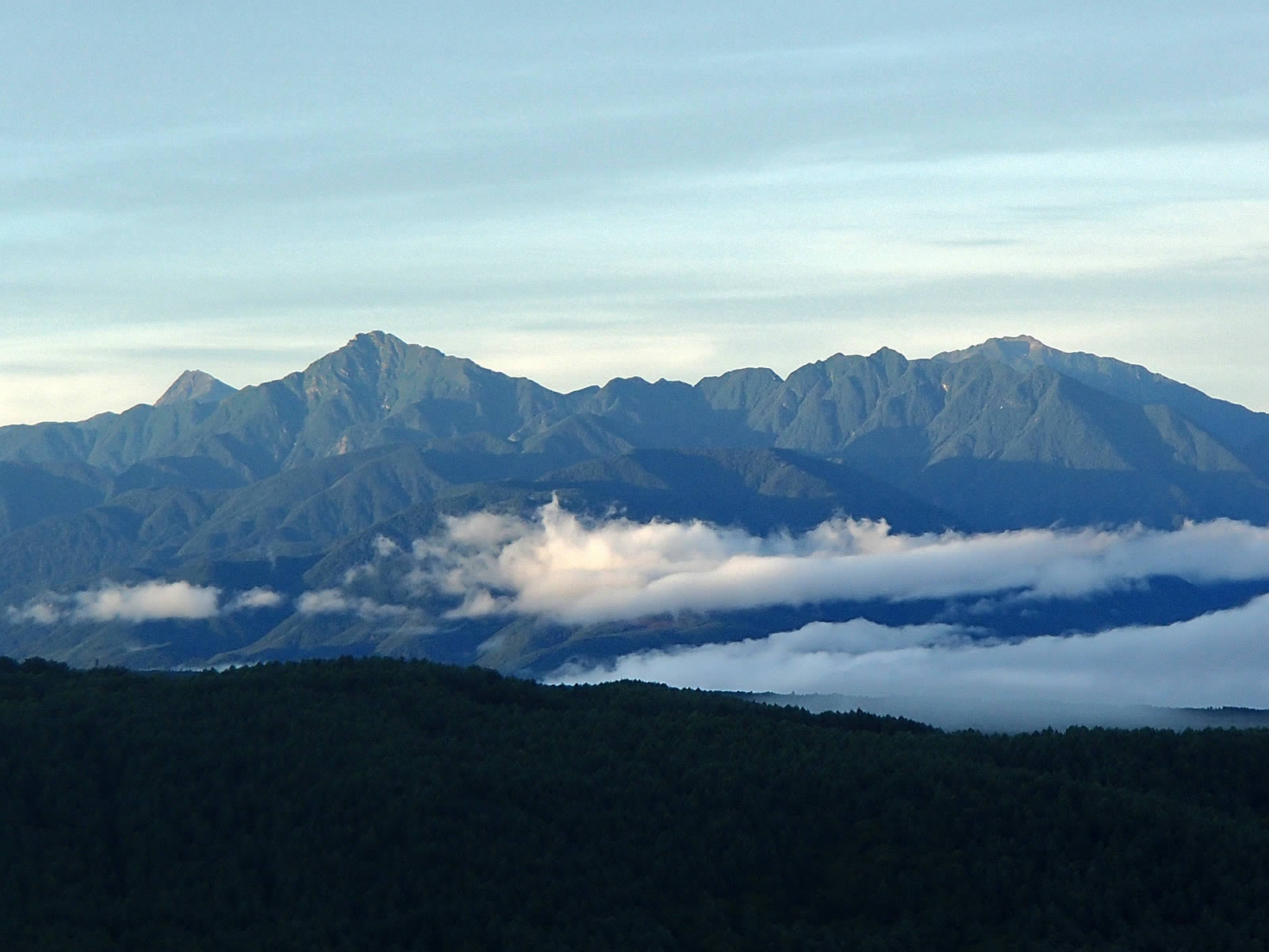 向かう途中の眺めが良い場所で車を駐めて南アルプスをぱちり。
