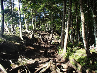 ところで前日は1日強い雨が降っていましたが、山では大雨だったようで登山道がすごいことになっていました(^^;。ま、なんとか靴を泥だらけにすること無く歩くことは出来ました。
