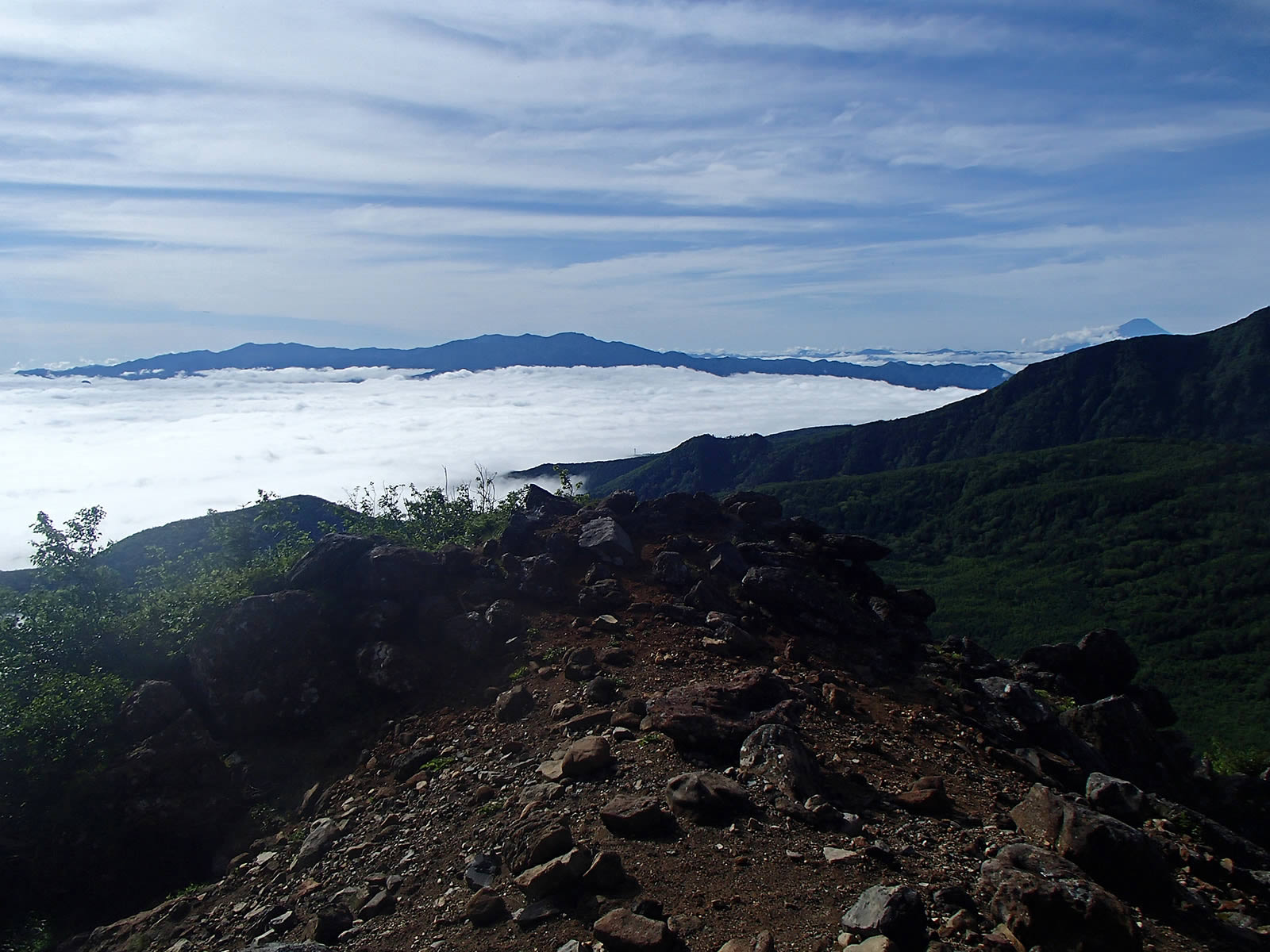 周囲にはだいぶガスが湧いてきています。やっぱり夏場は、展望は朝8時までが勝負です。