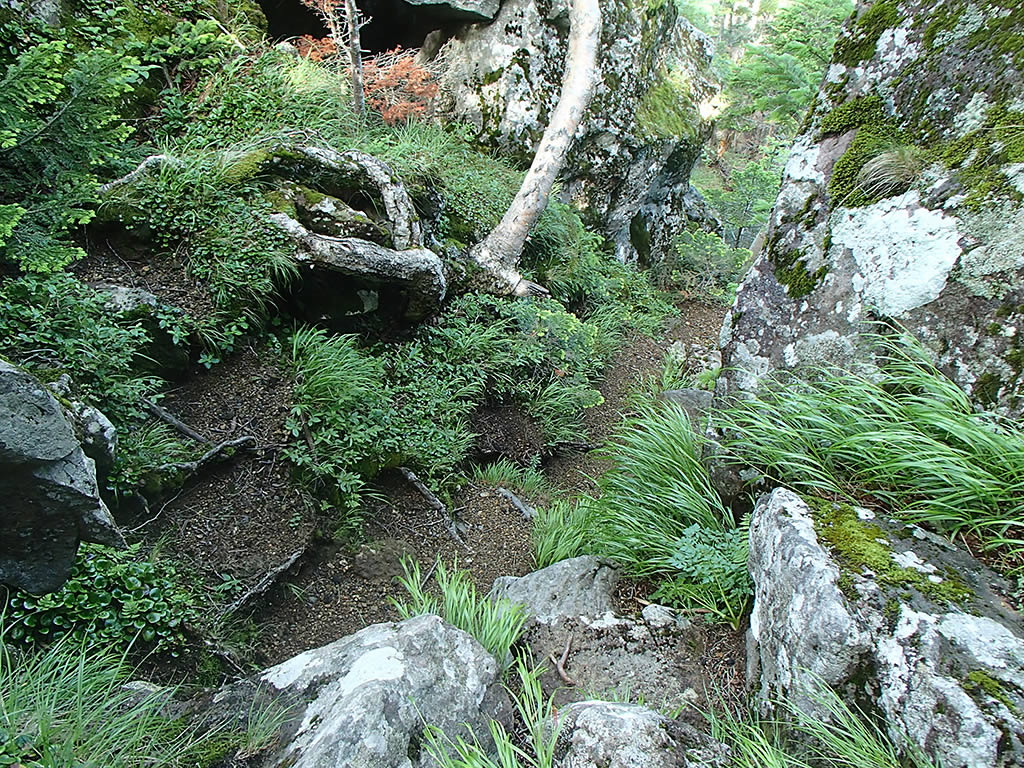 また森の中へ。少し踏み跡が不明瞭になりますが、がけの縁に沿って進んで行きます。