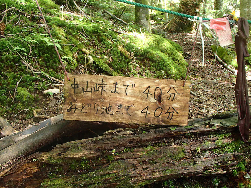 すぐ上にこの標識が。稲子岳へのバリエーションルートはこの標識の部分から進むようにとネット上の情報ではありましたので、まあ大体私もそれに近いルートをたどって歩いてきたようです(^^;。