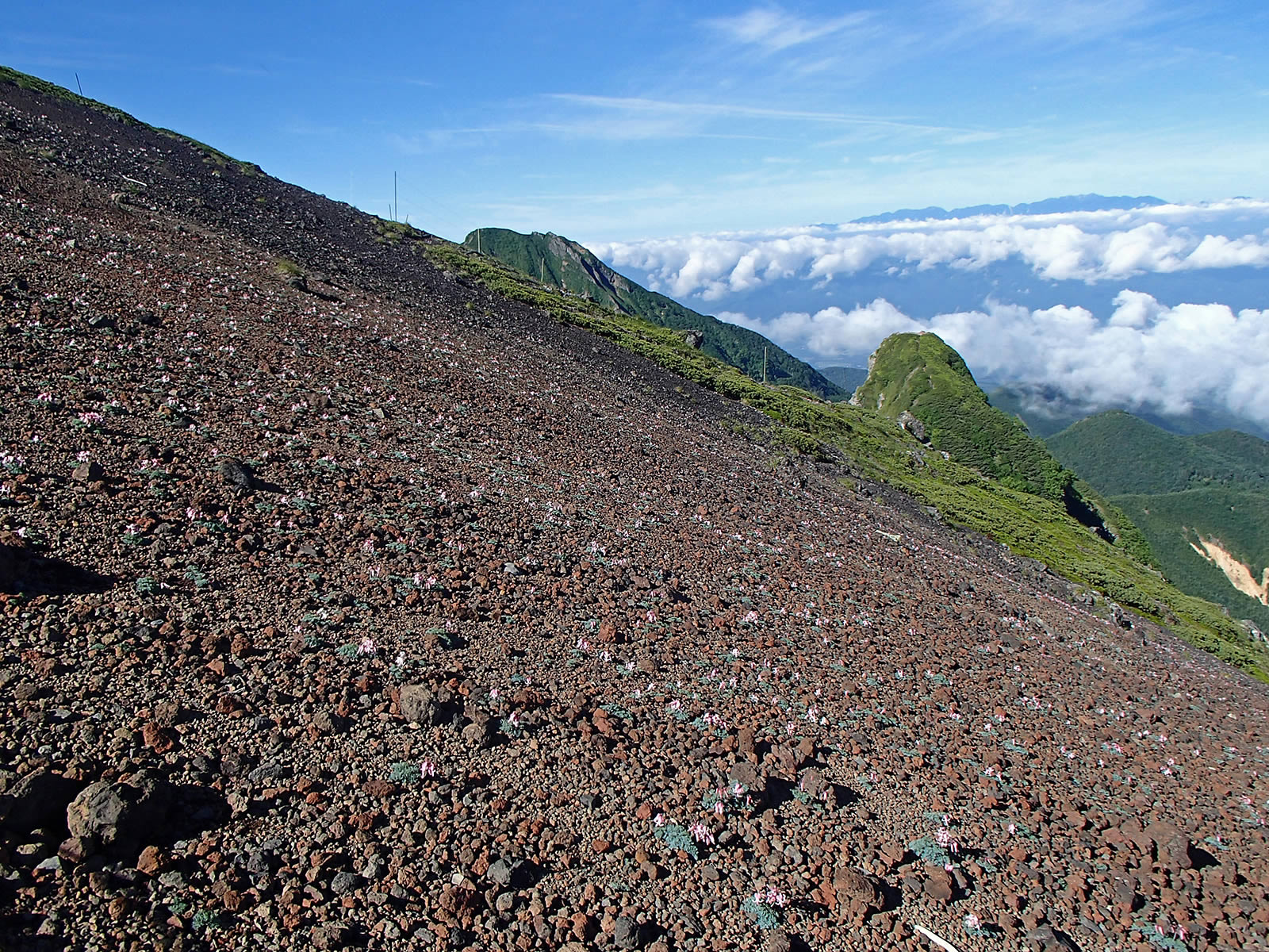 横岳へ登っていく斜面にもコマクサが沢山咲いていましたが、少しくたびれたものもぽつぽつとありました。