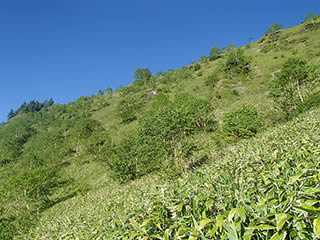 笹原の美しい斜面。